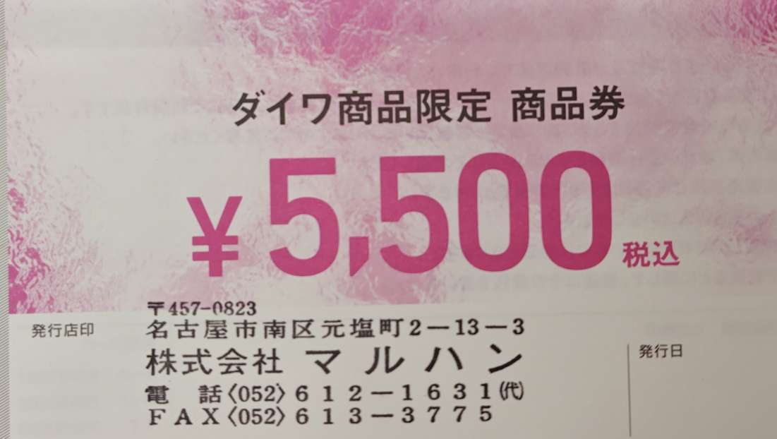 単品税込み¥5,500以上のダイワ商品に使用できます。マルハンのみご利用できます