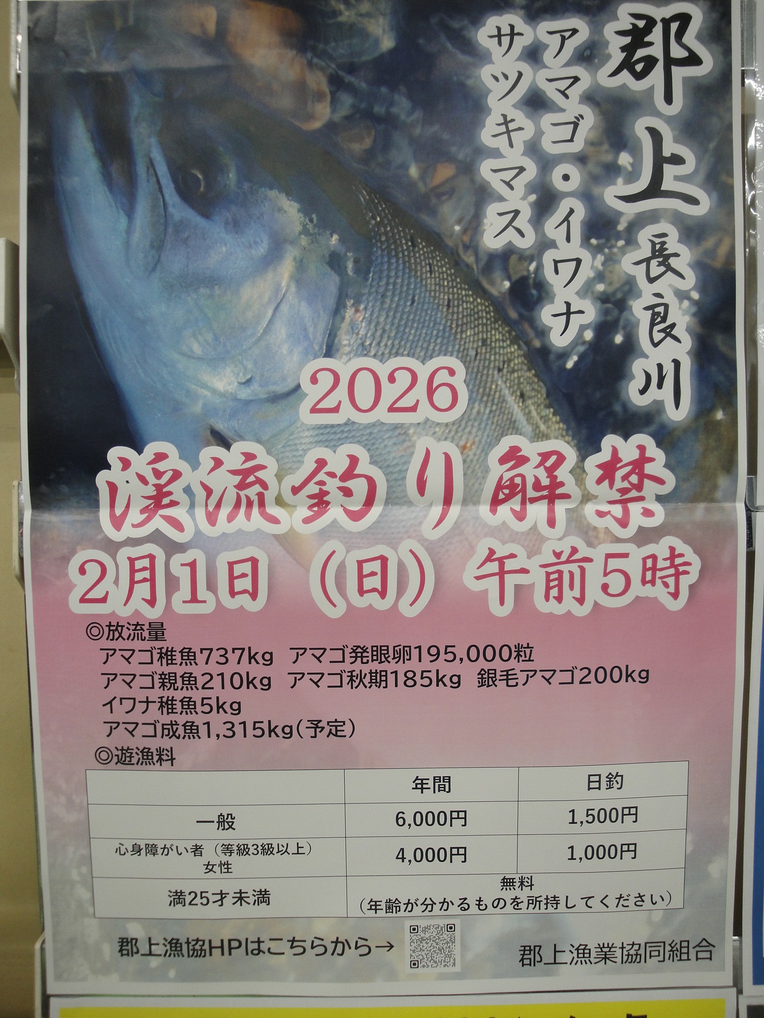 郡上漁協の雑魚遊漁証(1日券、年券、鮎+雑魚年券)