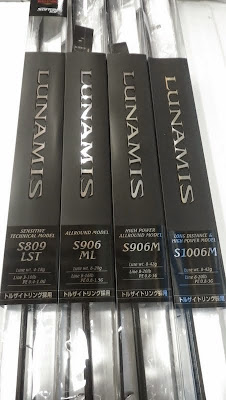 シマノのシーバスロッド「ルナミス」のNEWモデルが入荷しました!! 左からS809LST、S906ML、S906M、S1006Mの4アイテムが入荷しました!! 前モデルに比べて細くなった印象のブランクスとグリップ周り。 最新ガイド「トルザイトガイド」搭載。
