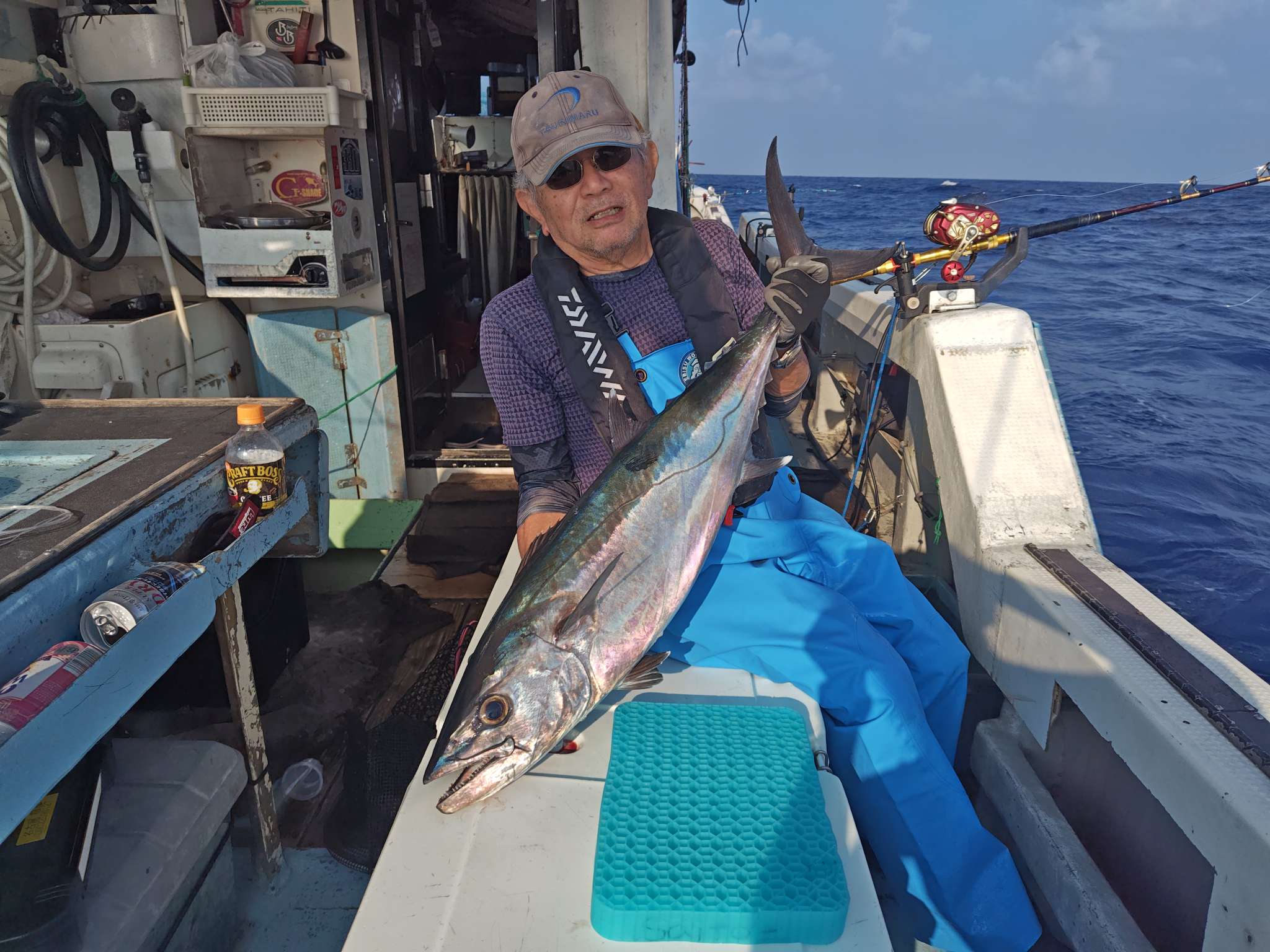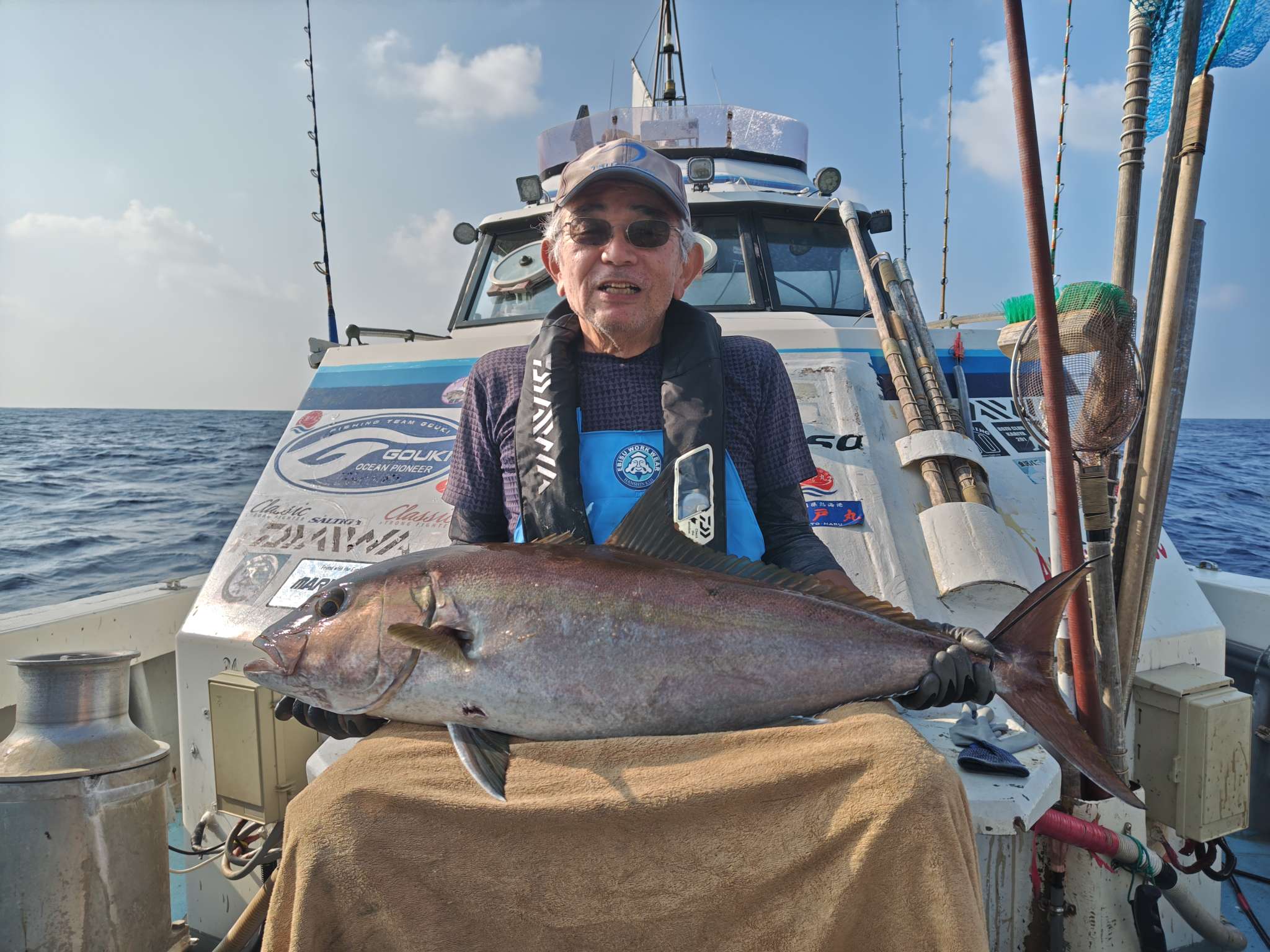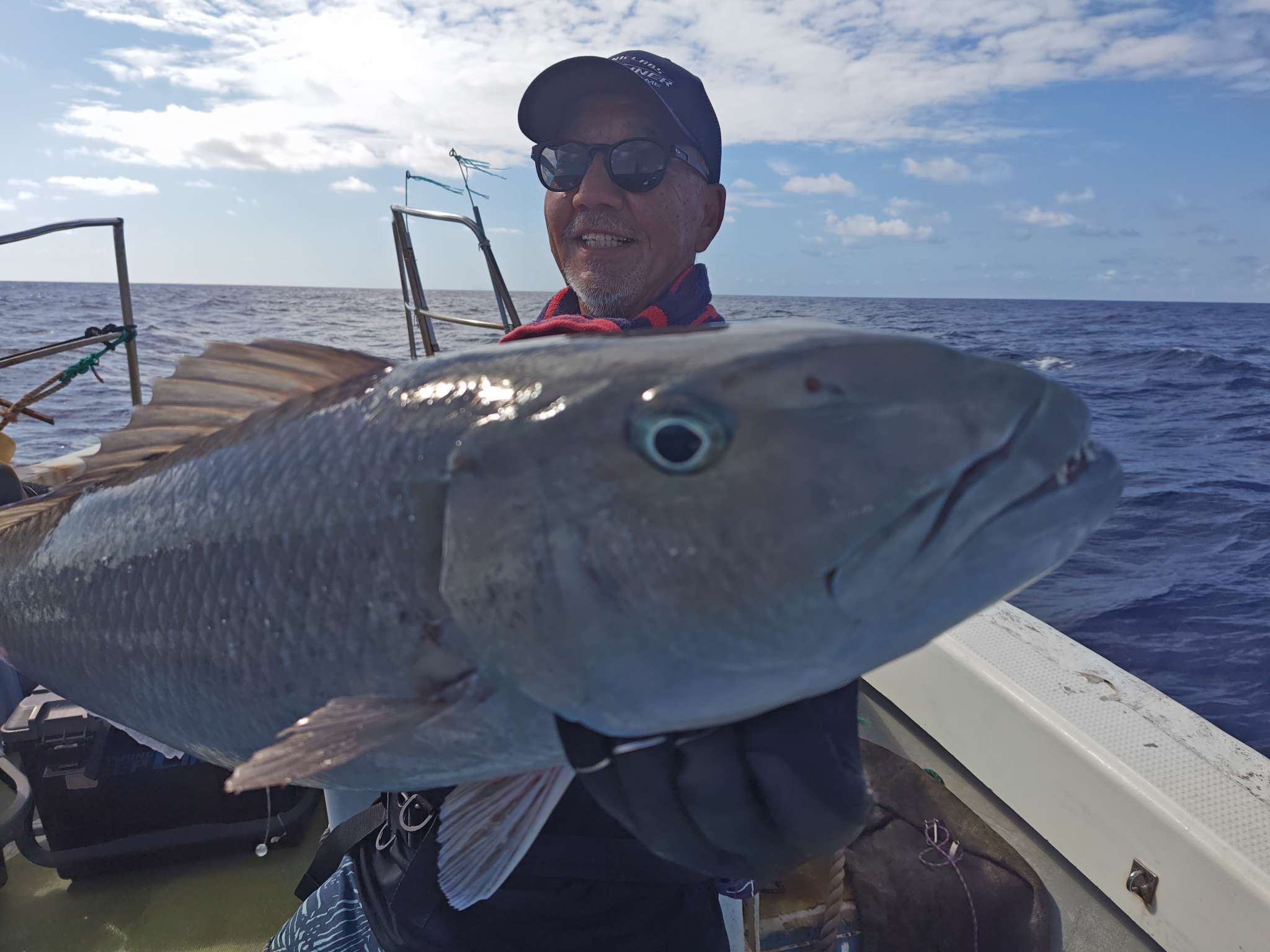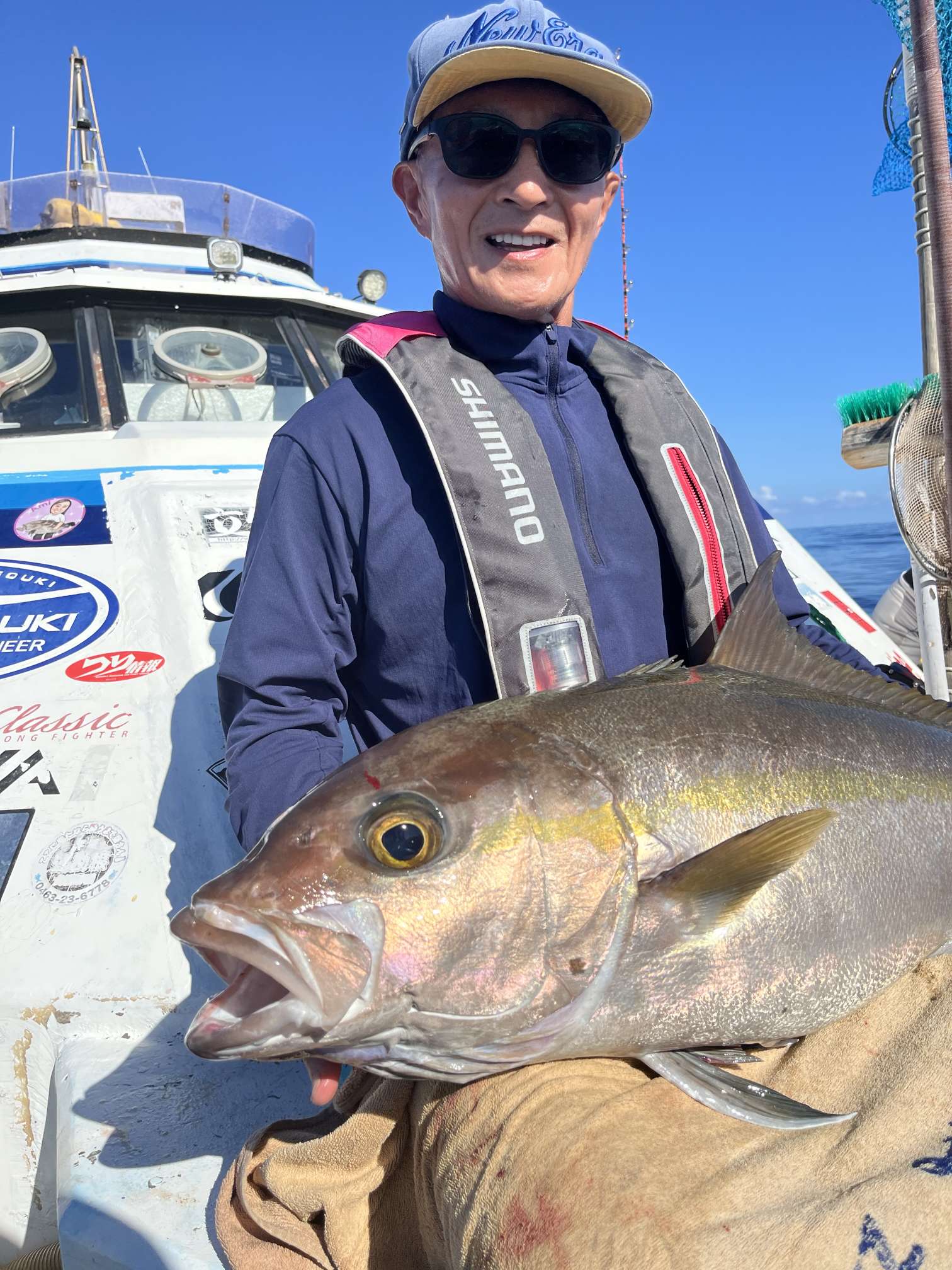 バラシ、すっぽ抜けに泣いていた右舷トモの服部さん ついにカンパチゲット!!!