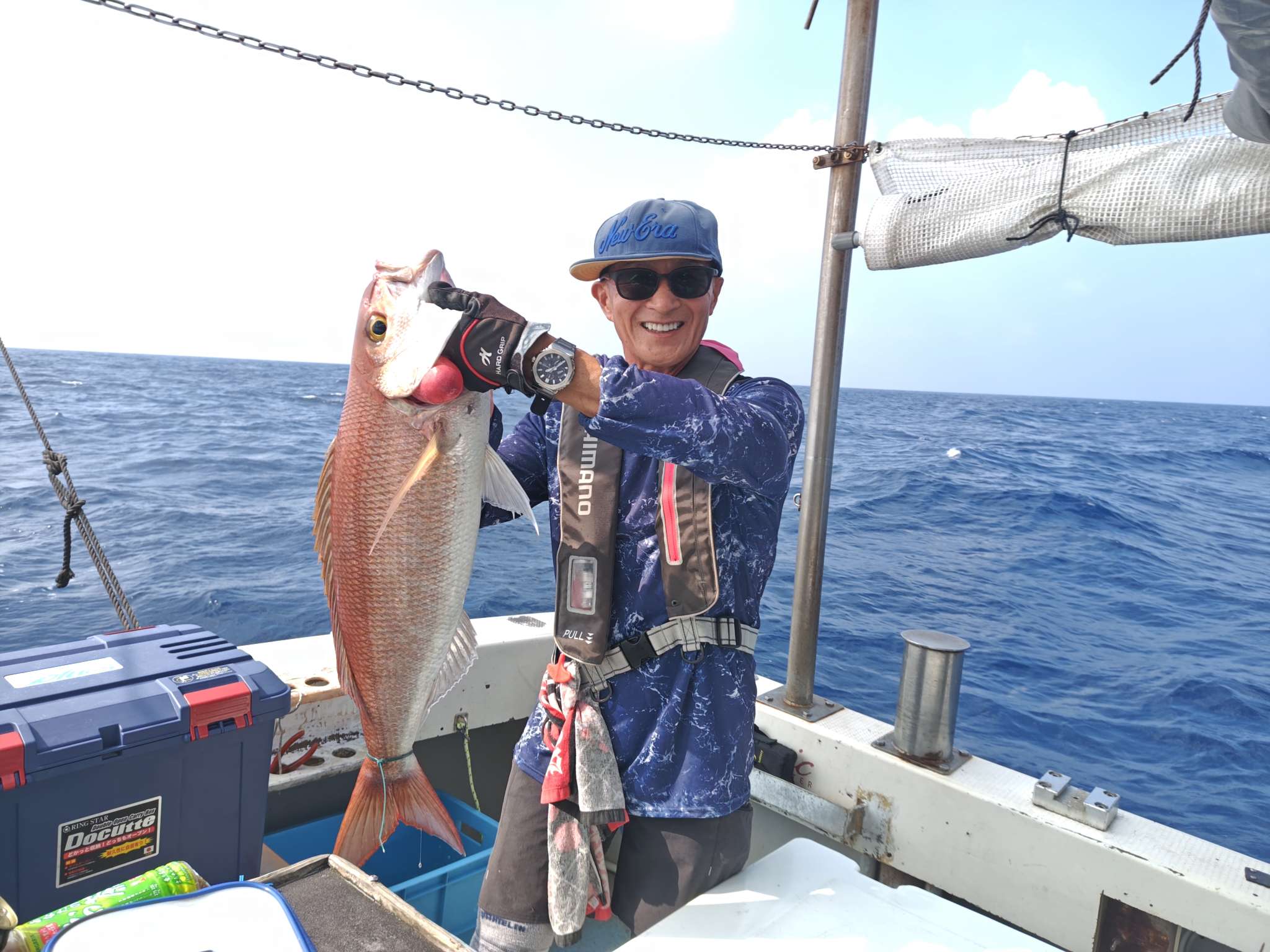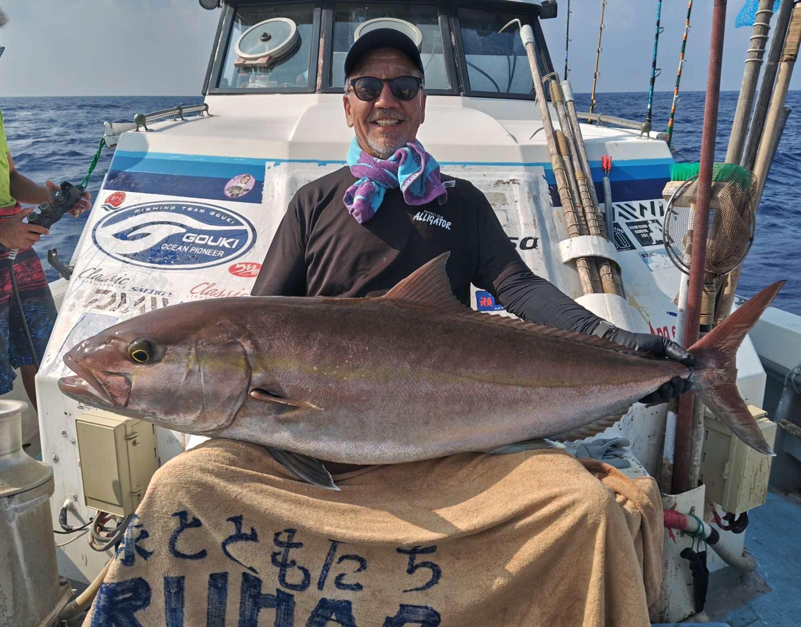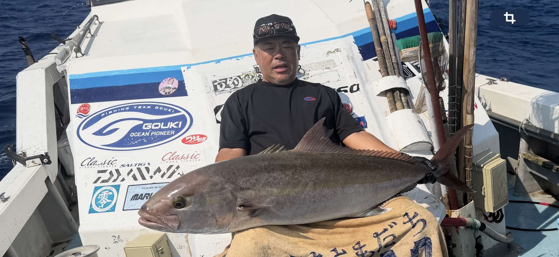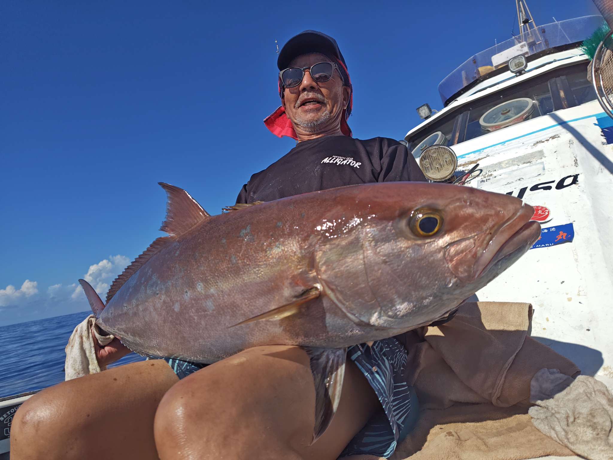 バラシ、すっぽ抜けに泣いていた右舷トモの服部さん ついにカンパチゲット!!!