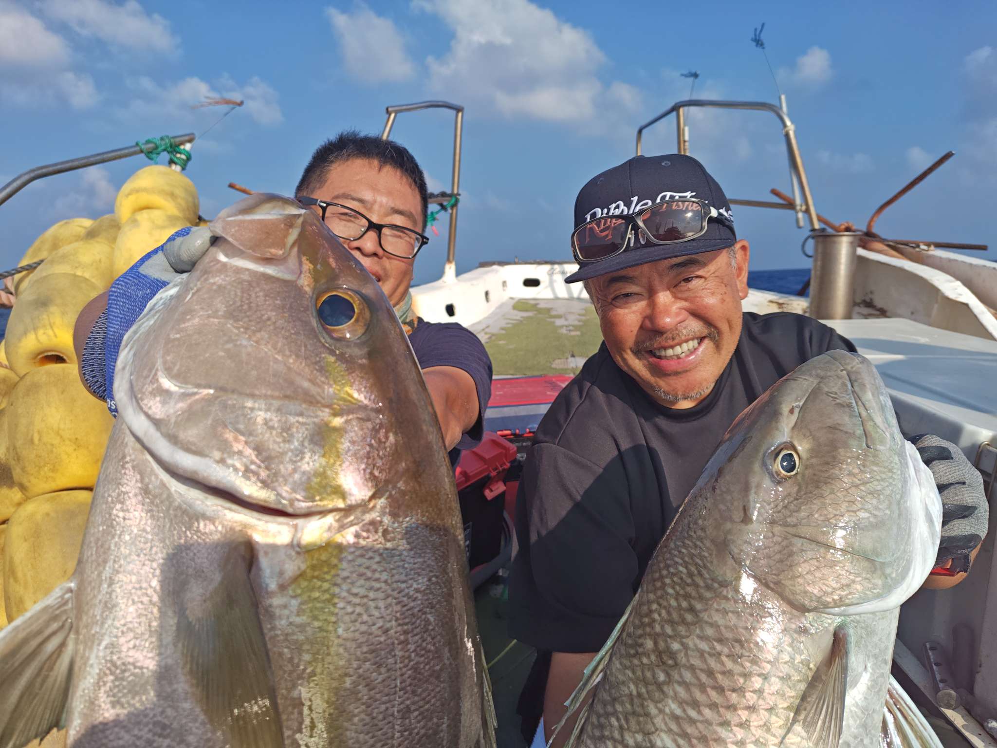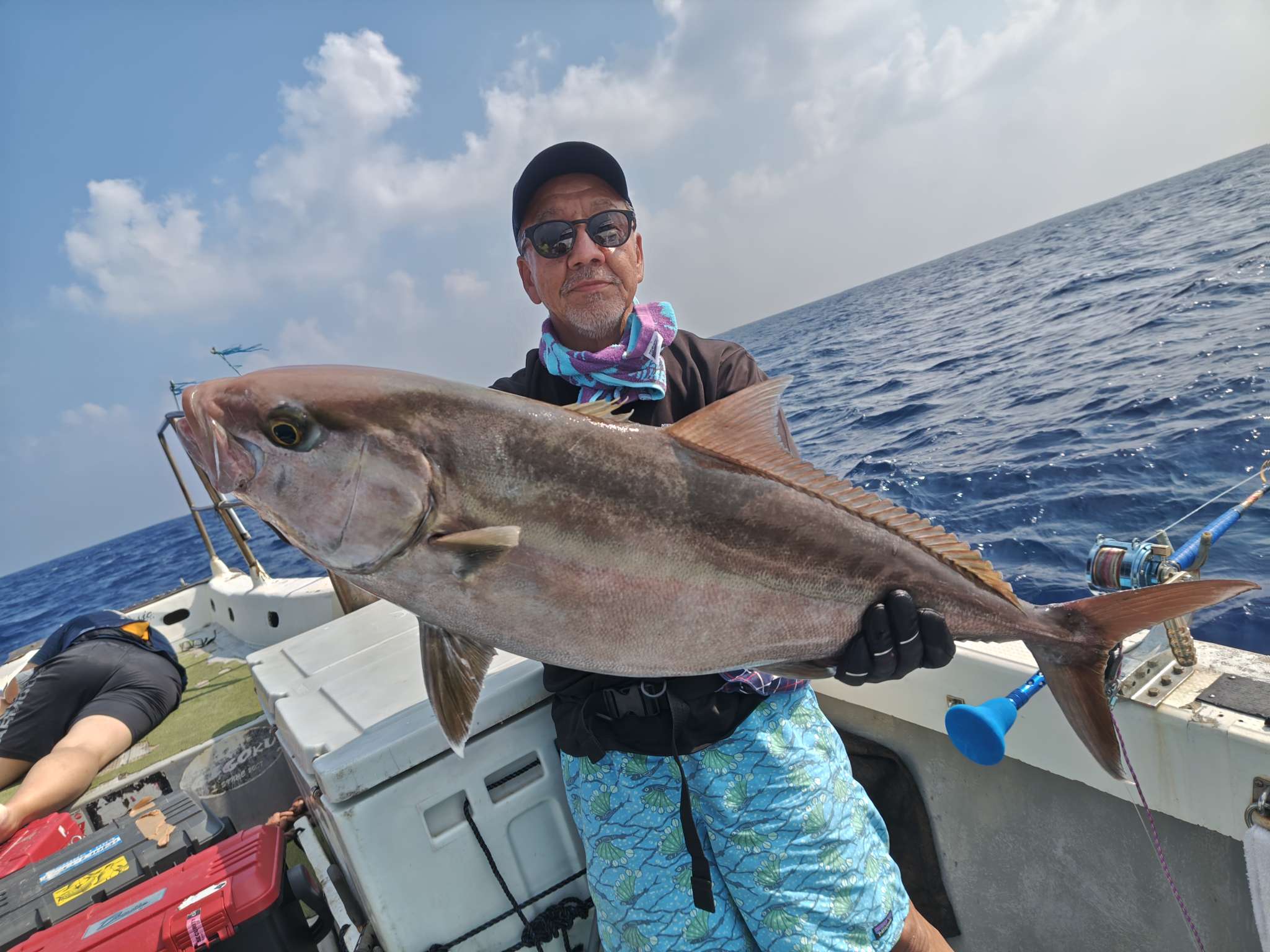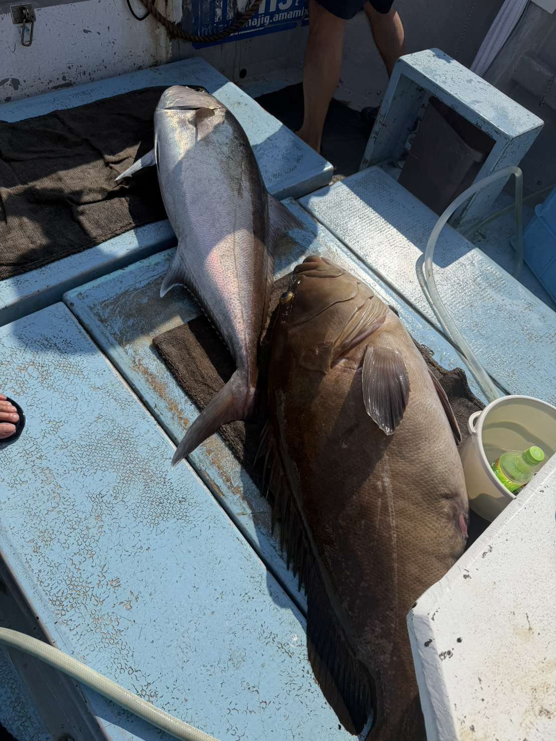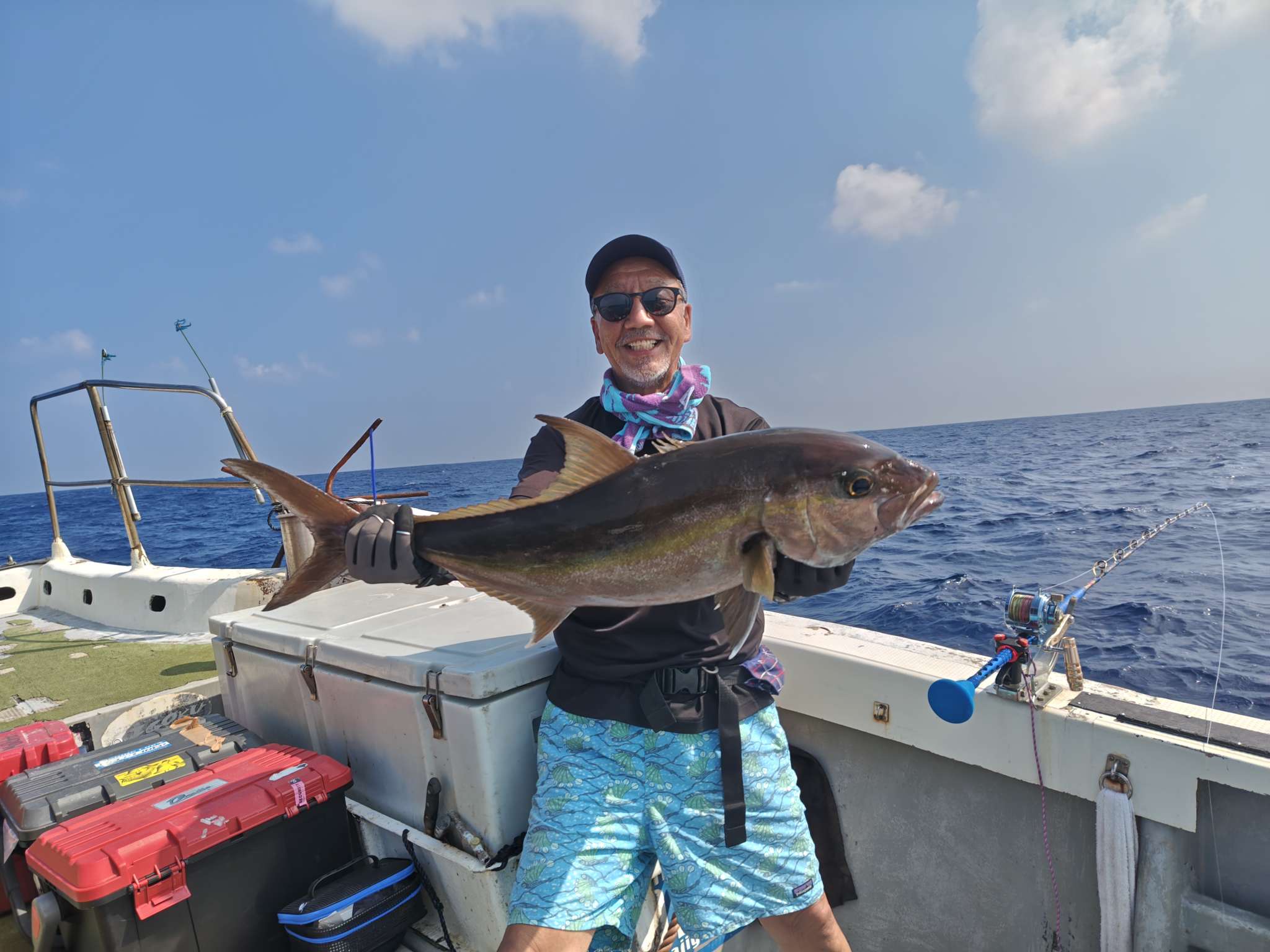 1日目のカンパチの写真が無くてすみません・・・山口さんがカンパチを掛けるとトラブルやらスマホが熱持ってカメラが使えないとか・・・これもご本人のスマホから頂きました・・・